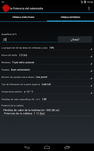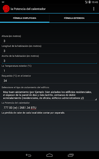 ATENCIÓN ! Esta aplicación no es aplicable para los cálculos de ingeniería, sistemas de calefacción.