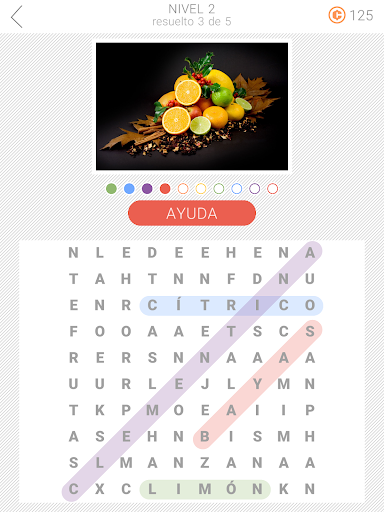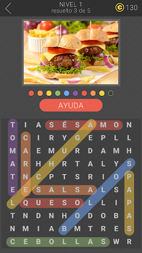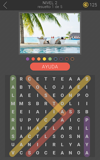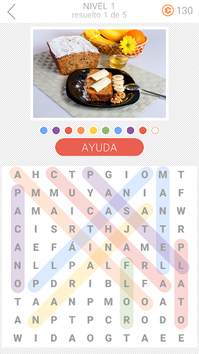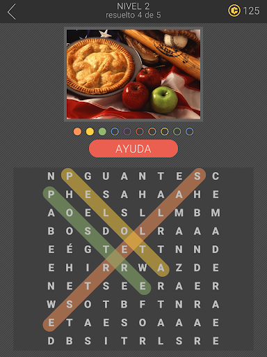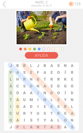 • Divertidos rompecabezas de búsqueda de palabras con claves de imagen.