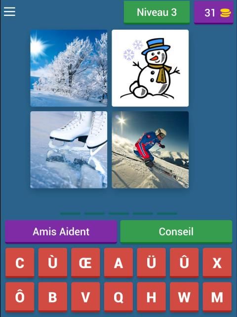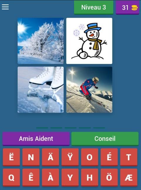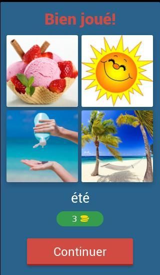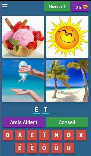 Comment jouer ? Regardez 4 images et devinez le mot qui les relie. Pour chaque mot que vous devinez, vous gagnez des pièces qui vous aideront à atteindre de nouveaux niveaux. Et en plus c'est gratuit.
