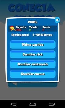 - Irás subiendo en la lista de Ranking siempre y cuando tengas muchos puntos en el Conecta 4.