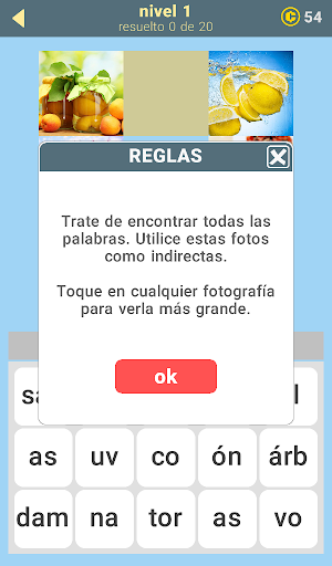 2 palabras para cada imagen, 20 palabras en cada nivel. Son 580 palabras