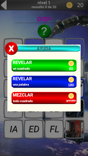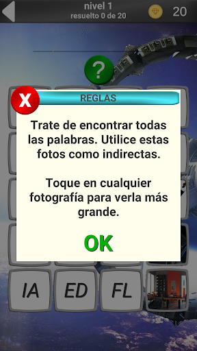 ¡Atención!!! ¡Actualizar la versión 1.0.2 a la versión 1.0.3 perderá el progreso del juego!!!! En la versión 1.0.3, agregamos recompensas por ver anuncios, reescribimos la lógica del juego y actualizamos los gráficos.En este juego tienes que tratar de adivinar la palabra representada en la imagen. Hemos tratado de hacer una colección de juegos anteriores sin cambiar las palabras y las imágenes, nos encantaría que usted aprecie nuestra idea y dejar un comentario al respecto. Por favor escriba en las revisiones su opinión, ¿vale la pena la idea o vale la pena cambiar algo? Disfrute de su tiempo libre y gracias. Su opinión es muy importante para nosotros.
