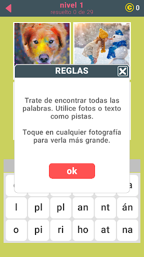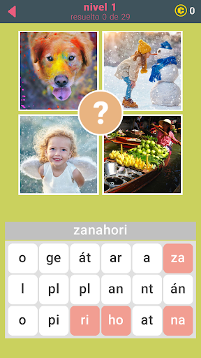Una palabra para cada imagen, 29 palabras en cada nivel. Son 638 palabras