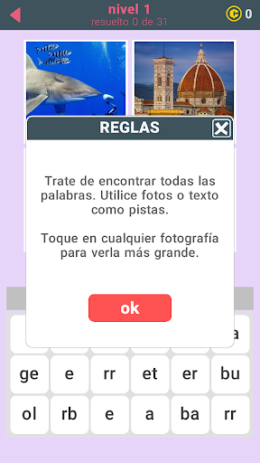 Una palabra para cada imagen, 31 palabras en cada nivel. Son 655 palabras