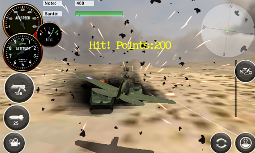 Correa en la cabina. Encienda los motores y el despegue de una acción por completo soplado. Aviones enemigos de batalla y ametrallar vehículos antiaéreos.