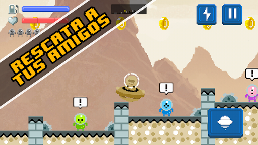 Disfruta de un juego arcade clásico, con alucinantes gráficos en pixel art, en el que tendrás que volar con tu nave para encontrar a tus amigos, atrapados en la pixeleada ciudad, y traerlos sanos y salvos a casa.