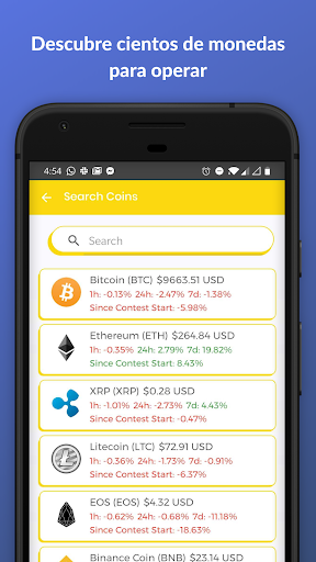 Nuestro simulador de trading de criptomonedas usa libros de órdenes reales de las plataformas de criptomonedas y puedes elegir entre 1000 criptomonedas para operar en nuestros juegos. Tenemos juegos de trading semanales con miles de jugadores participando. También tenemos concursos diariamente con 25 diferentes tipos de concursos, de manera que siempre encontrarás la forma más divertida de aprender trading de cripto.