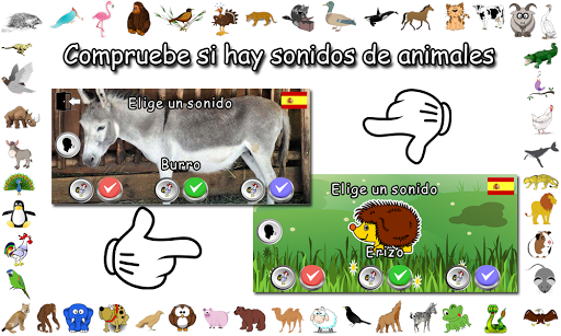 3) Controlar los sonidos de los animales. Aquí también tendrá que probar su conocimiento: verá un animal, escuchará cómo se llama y necesita indicar el sonido de este animal.