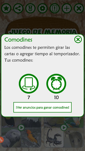 - Comodines para girar las cartas y añadir tiempo al temporizador.