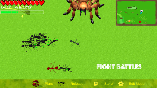 Reúne a tus aliadas, las hormigas negras, para atacar a la colonia de hormigas rojas. Y, lo más importante, ¡huye de las arañas!
