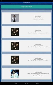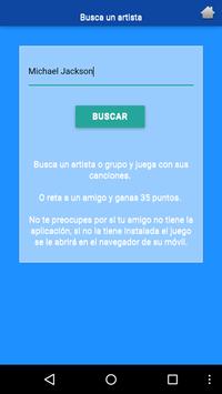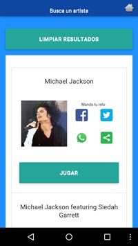 Otra opción es jugar buscando a un artista o grupo y te propondremos un listado de 10 canciones de ese artista o grupo para jugar. Puedes mandarle a tus amigos ese listado de canciones a ver quien acierta más, aunque tus amigos no tengan la aplicación podrán jugar el reto en el navegador de su dispositivo.