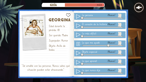 Apart of Me es un mágico mundo interactivo que te acompaña a través del luto. Este juego de autoayuda, creado junto con expertos en psicología infantil y jóvenes que han perdido a un ser querido, te ayuda a superar el duelo y a procesar tus emociones.