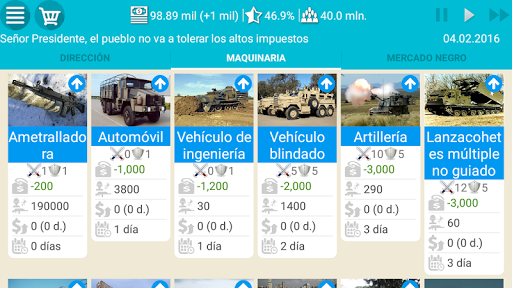- Realización de entrenamientos del ejército de estado (están disponibles más de 10 tipos de técnica).