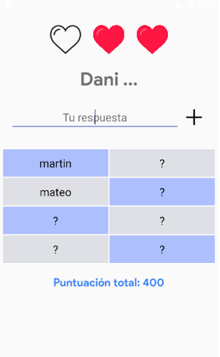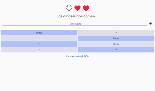 La pregunta es la búsqueda realizada por la persona, y las 8 respuestas son la continuación más frecuente de esa búsqueda. La continuación más común dará menos puntos que la continuación menos frecuente... ¿podrás adivinarlas todas?