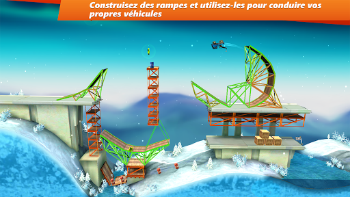 Construye rampas y vueltas para alcanzar tu meta en las diferentes fases. Pero no basta con construir estructuras: también tienes que conducir los vehículos y hacer uso de tu habilidad para llevarlos a la meta. Consigue estrellas, realiza saltos temerarios, volteretas y acrobacias espectaculares, dejando a tu paso un rastro de destrucción por todo el nivel para conseguir la puntuación más alta. Solo podrás conseguirlo si construyes los puentes y rampas perfectos.