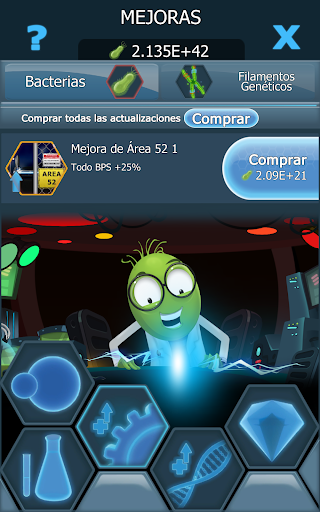 Conviértete en un magnate intergaláctico de bacterias mortales y domina el universo. De los juegos de inactividad, este es el que te llevará en una especial travesía espacial. Expande y multiplica grandes cantidades de bacterias, con mejoras en la producción de inactividad. ¡Desafíate y descubre la mejor forma de jugar y la estrategia de inactividad para destruir todo los planetas que puedas!