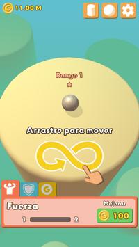 Desplázate deslizando el dedo por la pantalla. Las bolas enemigas tratan de rodar hacia ti y tirarte de la plataforma, pero si las golpeas en el momento adecuado las tiraras antes!. Otra táctica es esperar a un enemigo cuando está cerca del borde, para que se caiga accidentalmente por el borde.