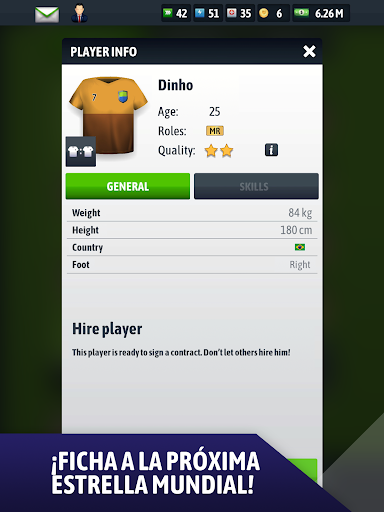 Busca en el mercado de fichajes un nuevo delantero con la ayuda de tu explorador. Envíalos a ver a jugadores jóvenes de todo el mundo para que firmen a la próxima joven estrella del fútbol español. Mejora las habilidades de tu equipo de fútbol.