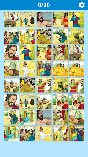 El objetivo del juego es muy simple, almacenar y encontrar los pares coincidentes de las imágenes. Cuando encuentre todos los pares de la etapa, como recompensa será desbloqueado imágenes con acontecimientos bíblicos en orden cronológica, que se pueden ver en cualquier momento a través de la opción "Mi Colección" del menú principal. Juega todo lo que quieras, sin restricciones de tiempo o número de intentos.