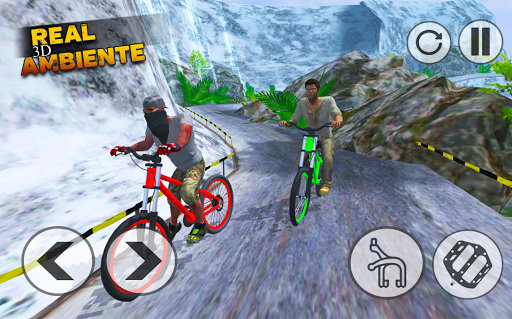 En esta aventura en bicicleta de montaña (Ciclista: ciclista Offroad Mountain Hill), Slowmotion: con la función Slowmotion, monta la bicicleta tanto cuesta arriba como cuesta abajo. Conduzca su bicicleta en carreteras montañosas peligrosas y puede hacer que su acción mueva terrenos traicioneros de las maneras más difíciles. Bicycle Rider: Offroad Mountain Hill Bicycle Rider Obtenga el control de su bicicleta de montaña extrema y supere las dificultades y conduzca con los pedales para obtener la vida real No se olvide de beber su bebida energética sensación de ciclo de conducción. este juego lo tiene todo, para permanecer en el campo de conciertos en desafiantes caminos de montaña completamente gratis. Bicycle Rider: Offroad Mountain Hill Bicycle Rider Extreme Freeride Bike en pista de MTB en descenso Si encuentras el juego un poco rápido Simulador. Durante el descenso solo tenga paciencia en bicicleta de montaña, evite caerse y chocar. ¡Consíguelo ahora, gratis! Ciclista: Offroad Mountain Hill Trucos y acrobacias de ciclista Te acostumbrarás a esta aventura y te encantará.