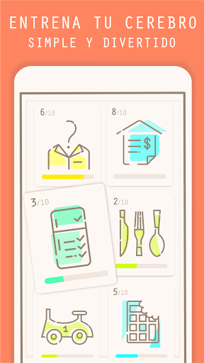 Con 25 diferentes juegos cerebrales divididos en 5 categorías, ambos lados de tu cerebro (izquierdo y derecho) serán puestos a prueba. Estos juegos están inspirados en la vida diaria y están diseñados para mejorar habilidades que usas a diario: desde encontrar un mail perdido hasta recordar el nombre de tu nuevo compañero de trabajo. Están organizados en pequeños y rápidos entrenamientos que puedes completar en 10 minutos o menos.
