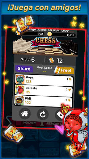 Es muy sencillo, en cada sorteo compartimos una parte de nuestros ingresos por publicidad con un afortunado ganador. Cuantos más usuarios haya, más dólares sortearemos. No hay compras integradas y no hay que pagar para ganar. A nuestro modelo lo llamamos Free-2-Win (ganar es gratis) y estamos muy orgullosos de él, ¡así que descárgate Big Time Chess y échale un vistazo para poder ganar premios en efectivo! ¿Por qué vas a querer jugar a otra cosa?