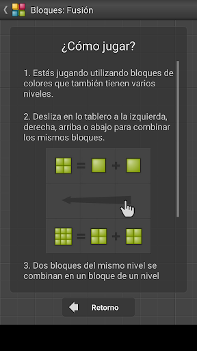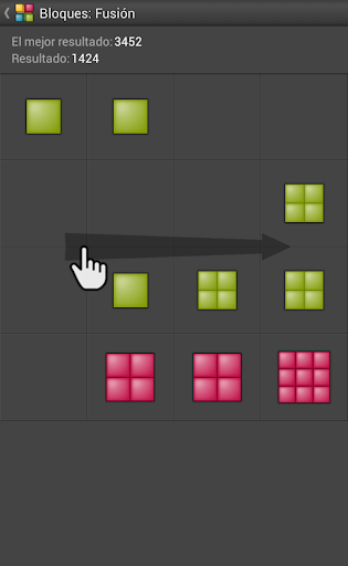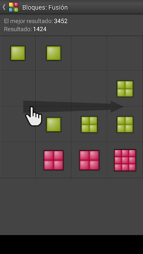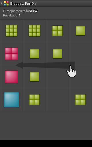 - Desliza en el tablero a la izquierda, derecha, arriba o abajo para mover todos los bloques y combinar los que tienen el mismo color y el nivel.