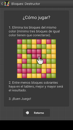 Es un juego de lógica gratuito para niños y adultos donde se debe eliminar del tablero los bloques del mismo color.