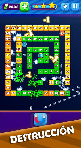 Sostén la pantalla con el dedo y muévelo para apuntar. Golpea y lanza las bolas para romper los ladrillos. Puedes usar habilidades especiales con ellas para completar niveles aún más divertidos e interesantes.