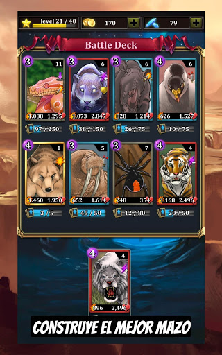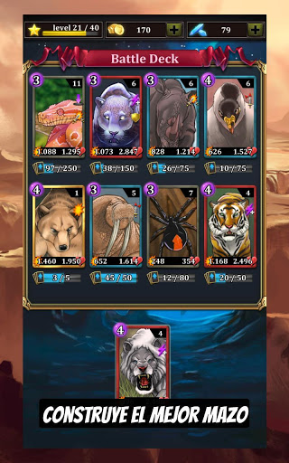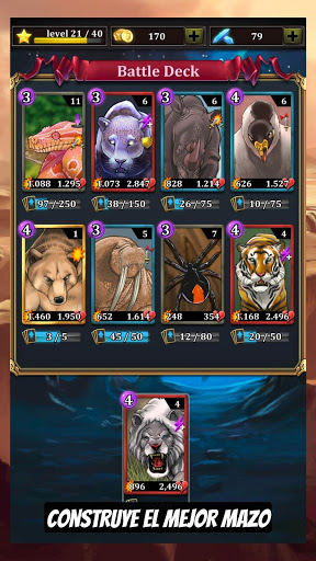 * Cartas de animales raras, épicas y legendarias con muchos niveles de mejora