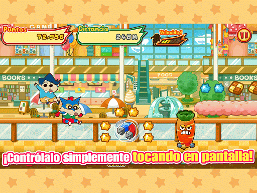 - ¡Toca a Shinchan corriendo a toda prisa para esquivar los obstáculos y reúne dulces!
