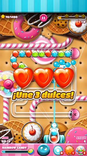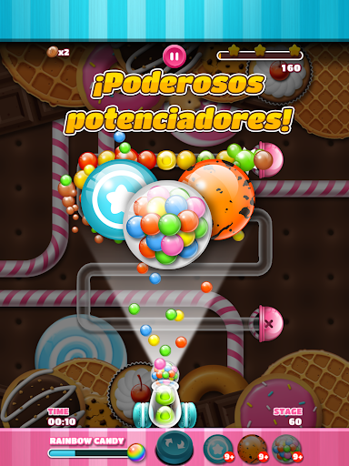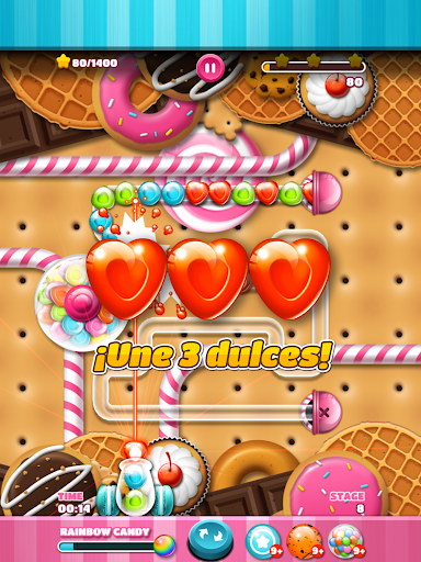 ¡Continúa disparando hasta juntar 3 dulces del mismo color para completar las misiones!