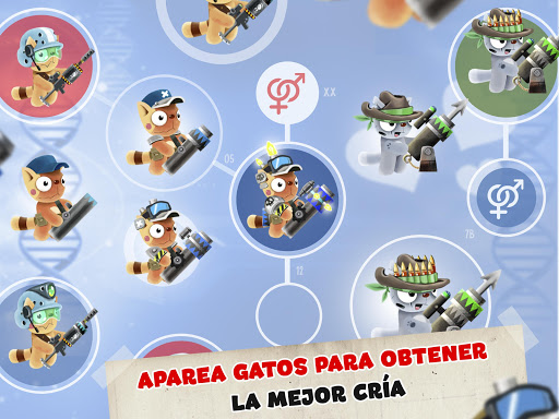 Es una arena de batalla con gatos donde puedes directamente manejar tu máquina de batalla usando mecánicas de resortera. ¡Para hacer un disparo literalmente necesitas halar la cola del gato!