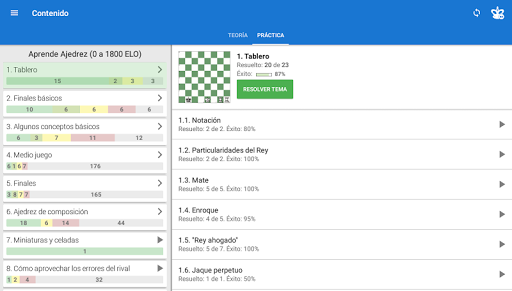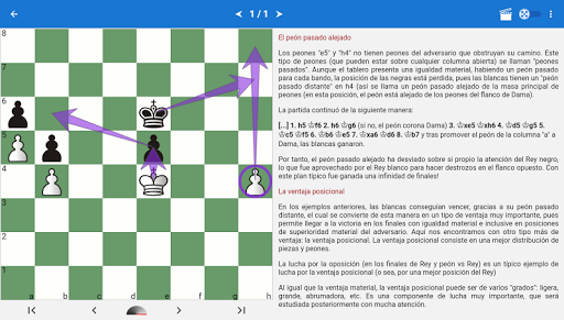 Esta app de enseñanza es una especie de guía de ajedrez, la cual te enseñará las reglas y las leyes del ajedrez, acompañándote durante todo el proceso, desde el nivel de principiante, hasta el nivel aproximado de 1800 puntos Elo. El curso está compuesto por 100 tópicos, entre los cuales están las reglas de ajedrez, métodos de juego en la apertura, el medio juego y en los finales, así como los procedimientos combinativos y los elementos básicos de la estrategia. El curso contiene en total 500 ejemplos didácticos y 700 ejercicios, muy útiles para una mejor asimilación del conocimiento adquirido.
