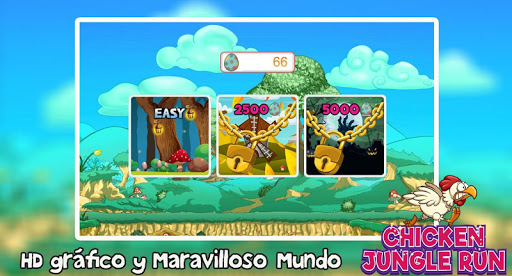 Chicken Jungle Run es un juego simple en 2D con música relajante y gráficos adictivos. Incluso un niño pequeño puede jugar este simple juego de carrera. Chicken Jungle Run tiene soporte para casi todos los dispositivos Android. No se preocupe por el espacio en el teléfono, esta emocionante Chicken Adventure Run tiene solo 20 MB y casi todos pueden permitirse algo de entretenimiento.