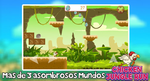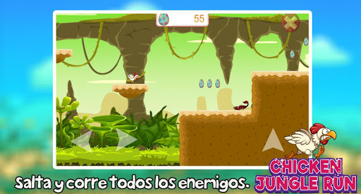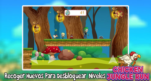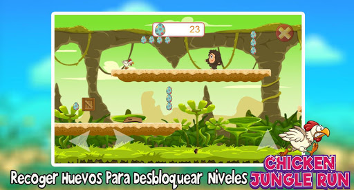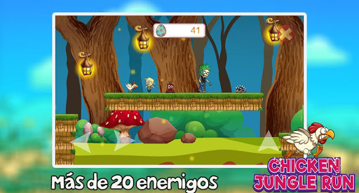 Correr en la jungla de pollo es un motor de juego de acción 2D desarrollado por Mobile-Tech.