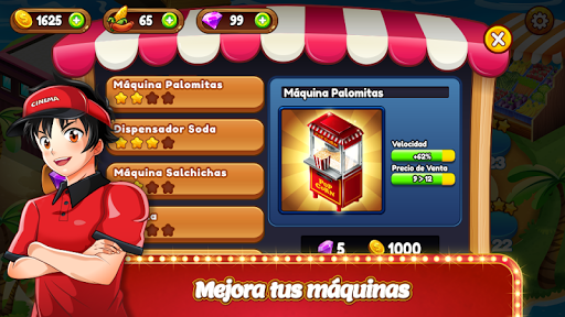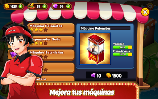 Atiende a los clientes del cine que están esperando en la cola antes de ver la película para disfrutar de las más deliciosas palomitas de maíz, perritos calientes, sodas, hamburguesas y mucho más.