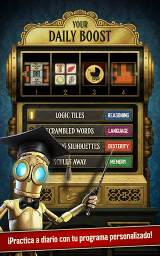 • Practica todos los días con el Daily Boost, tu programa personalizado de entrenamiento mental, y mejora tus habilidades cognitivas.