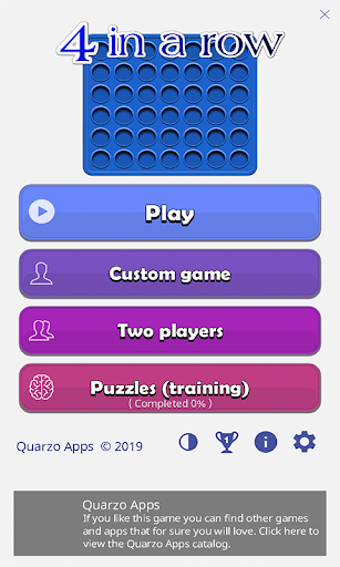 in a Row is the perfect game to play against friends, or any time you have a few minutes to spare. Each player takes turns choosing a column to drop a chip in. Your goal is always to connect four chips of your own color in a row, either vertically, horizontally or diagonally. The first player to do so wins the game.