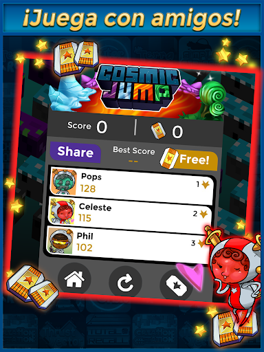 Es muy sencillo, en cada sorteo compartimos una parte de nuestros ingresos por publicidad con un afortunado ganador. Cuantos más usuarios haya, más dólares sortearemos. No hay compras integradas y no hay que pagar para ganar. A nuestro modelo lo llamamos Free-2-Win (ganar es gratis) y estamos muy orgullosos de él, ¡así que descárgate Cosmic Jump y échale un vistazo para poder ganar premios en efectivo! ¿Por qué vas a querer jugar a otra cosa?