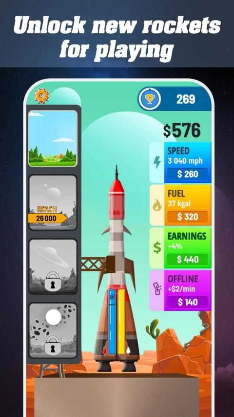 ★ Get high scores and unlock new rockets