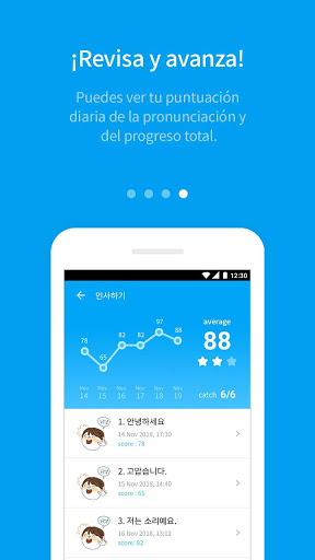 Revisando tu puntuación diaria de pronunciación y progreso total.