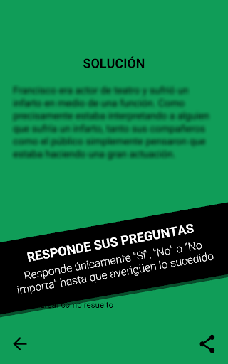 Cuando el narrador considera que la historia está lo suficientemente resuelta, el narrador puede finalizar la partida y leer la solución completa.