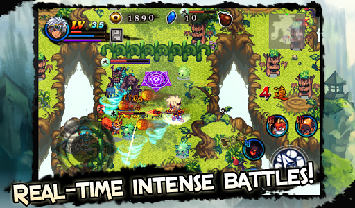 ¡No hay ni un respiro cuando te atacan demonios por todas partes! Repele las hordas de demonios con tu ataque normal, o carga tu combinación definitiva y arrasa con esa criaturas repugnantes. ¡También puedes lanzar halos demoníacos y hechizos de ataque e invocación!