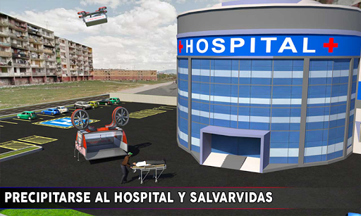Este concepto futurista del drone de la ambulancia es increíble en situaciones de la emergencia como el atasco de la ciudad donde las ambulancias no pueden alcanzar el punto del accidente el tiempo. 911 el departamento de rescate envía llamadas de emergencia a los equipos de rescate del hospital más cercano para salvar a los ciudadanos. Conviértete en piloto de helicópteros de ambulancia para despegar de la azotea del hospital y volar por encima de la fiebre del tráfico a través de los edificios curvilíneos de la ciudad. Activar las sirenas de ambulancia de vuelo y disfrutar de misiones de rescate en helicóptero intemporal en un entorno masivo. El trabajo del conductor del rescate de la ambulancia es muy crítico y peligroso así que tenga cuidado y preparado para demostrar el valor, la agilidad y el estado de alerta. Los ciudadanos lesionados necesitan atención médica en una ciudad abandonada, despegan en ambulancia de aviones no tripulados y transportan pacientes a los hospitales vecinos de la ciudad. Manténgase alerta y use las habilidades de conducción imprudentes desde el suelo para disfrutar del juego único del simulador de drone y llegar al sitio del accidente lo antes posible!