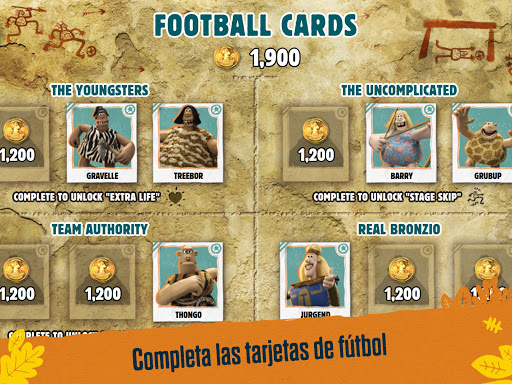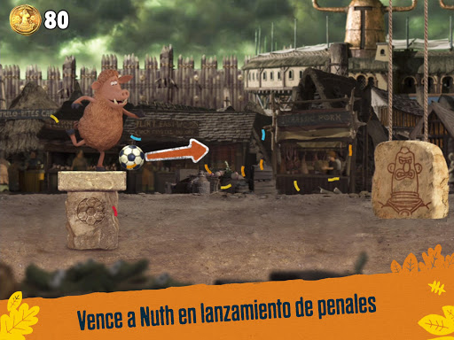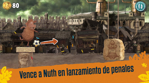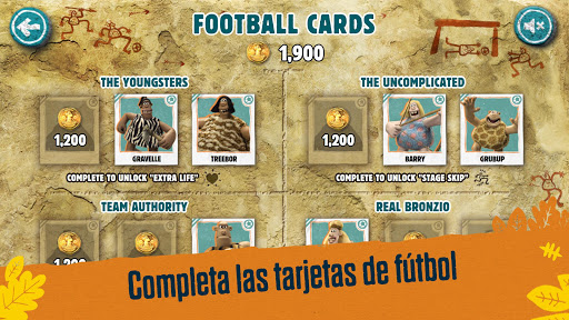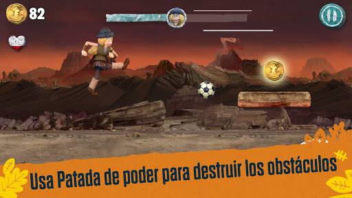 ¡Corre a través de paisajes prehistóricos de la película, recolectar monedas de bronce y tarjetas de fútbol para desbloquear potenciadores! ¡Vence a Nuth en un tiro penal al final de cada nivel para obtener más monedas!