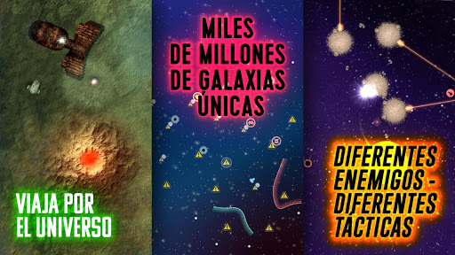 - Evoluciona tu nave a medida que avanzas y subes de nivel en el juego.