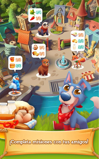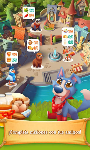 Desbloquea la Aldea para completar misiones y recibir pedidos nuevos. ¡Ábrete camino a través de niveles ingeniosos para conseguir ingredientes, mejorar las construcciones de tu granja y comenzar a producir!