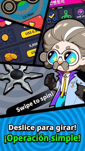 1) Desliza la pantalla para hacer girar el Spinner y ganar oro. Puedes comprar nuevos Spinners en la tienda con oro.