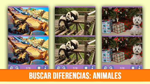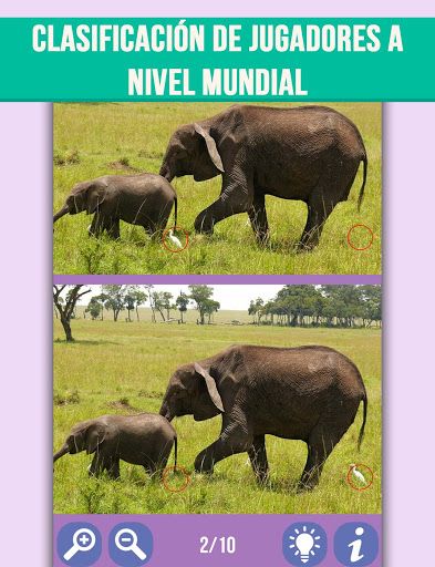 Buscar diferencias: Animales es un emocionante juego, también conocido como el juego de "buscar las diferencias". Según las reglas clásicas del juego, hay que encontrar las 10 diferencias entre dos imágenes. En un momento difícil, le ayudará la pista que mostrará el área que esconde una diferencia. ¡Este juego les gustará tanto a niños como adultos!